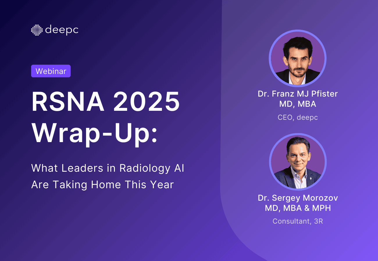 RSNA 2025 marks a turning point for radiology AI. The conversations move from impressive demos to practical integration, from isolated pilots to scalable adoption. This post-conference session brings together Dr Franz Pfister and Dr Sergey Morozov to discuss what truly mattered at this year’s meeting.